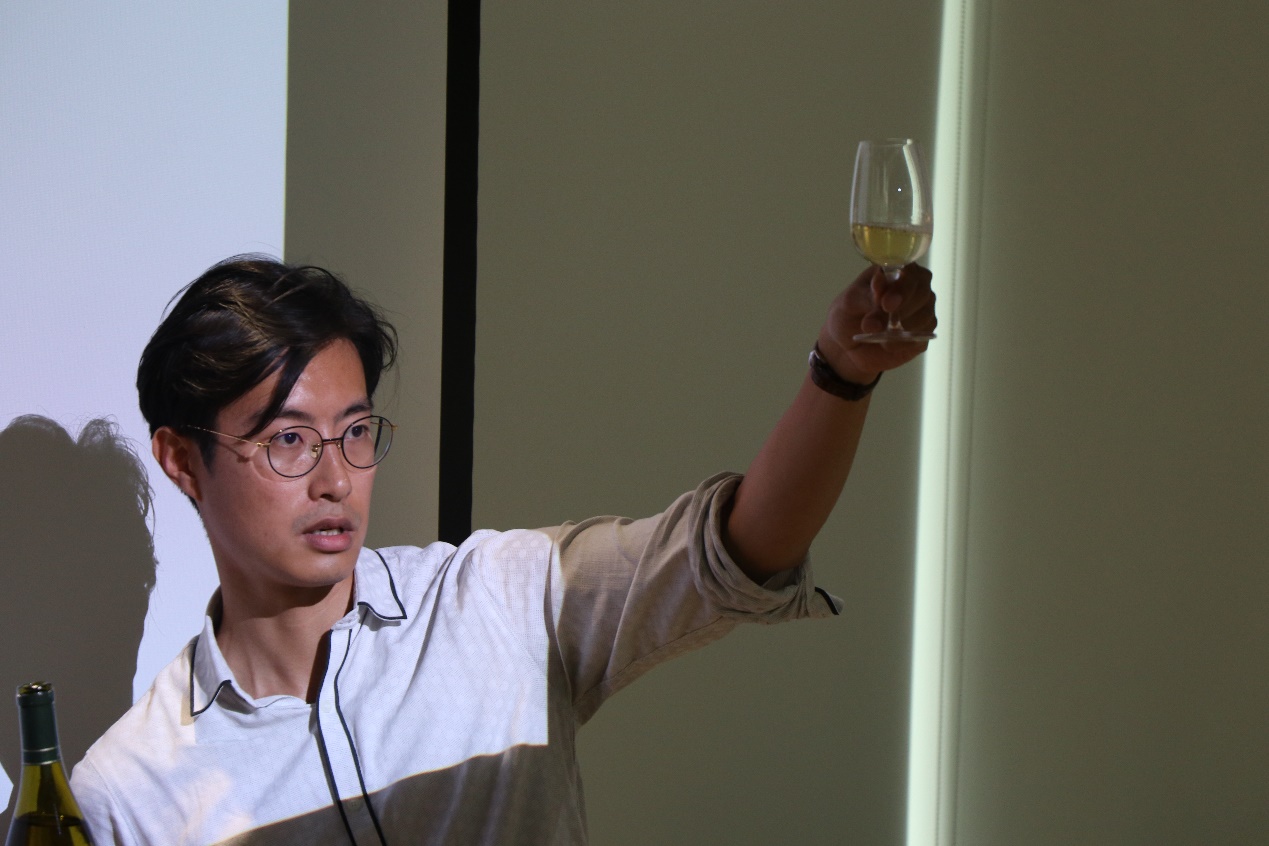 郭咏倡老师正在讲授如何鉴别红酒