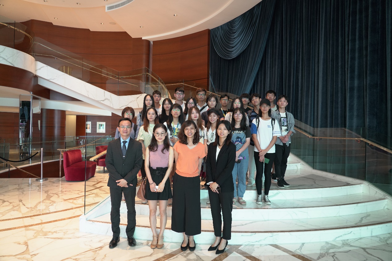 下午的课程分两部分,第一部分课程是到澳门皇冠假日酒店参观,酒店工作人员向同学们介绍洲际酒店集团的发展历史,带领同学们参观其西餐厅、中餐厅以及宴会厅等。