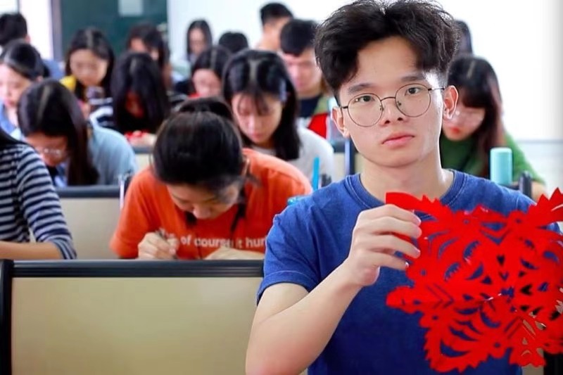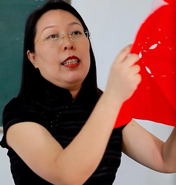我院教师乔国玲为同学们展示剪纸艺术