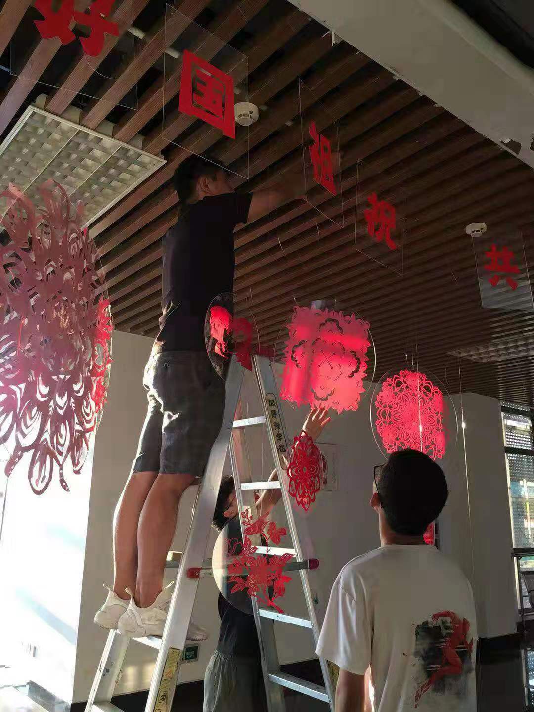 9月29日,为庆祝新中国成立70周年,文化创意与旅游学院于佛山三水校区图书馆五楼举办了以“礼赞新时代,共祝祖国好”为主题的剪纸展览。本次展览的参与者由来自中国民间美术鉴赏课(主讲教师为我院教师乔国玲)的同学们以及“国风”社的社员们组成,大家通过剪纸,为祖国庆生、为学校献礼、表达对祖国最诚挚的热爱与祝福。活动吸引了不少同学前来参加,还有同学专门到现场拍照,感受热烈的氛围。展览活动将持续到年底,欢迎大家到现场体验。龚思颖老师及曾严彬老师共同参与了本次展览的策划与布展工作。