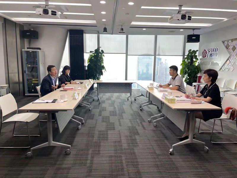2021年8月12日影视产业学院院长贾毅与马琪君老师前往广州产业投资基金管理有限公司(以下简称“广州基金”)进行交流学习文化产业投资经验,并就未来校企合作展开洽谈。广州基金党委副书记鲁银望、企业文化部副总经理潘敏儿参加了洽谈会。