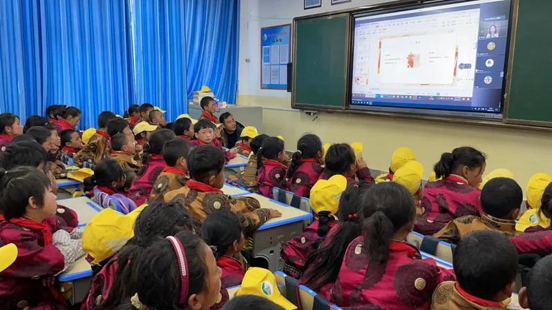 在卡加道乡中心小学这所藏族学校,当朱自清的《背影》和《请党放心,强国有我》两篇文章被网络远端的支教老师优美读出时,全校参与活动的200多名学生被深深吸引,他们通过电脑和网线,同步接受了朗读技巧的培训。学生看着大屏幕,认真地跟着远方的教师练习普通话咬字,练习声音弹性、揣摩重音表达技巧。
