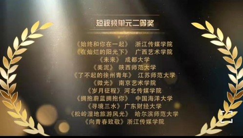 年会当晚,中国高校影视学会2020-2021年度学术成果、影视作品推优活动暨第十四届“学会奖”、第十届“学院奖”在云端揭晓。我院师生作品共摘得1个二等奖、3个三等奖。包括贾毅教授、张乐副教授主持完成的《佛山市促进影视产业发展专项资金可行性研究报告》获调研报告组三等奖,我院为三水量身打造的首部文旅宣传片《寻境三水》获得短视频单元教师组二等奖,广播剧《驰援武汉的日子》获教师组声音单元三等奖,19级数字媒体艺术专业学生冯洁莹、吴梦瑶、李家瑜、欧晓钰创作的《蒙娜珍珍——一叶子广告》获得学生组短视频三等奖。这是学院成立以来第一次多个作品参与中国高校影视学会“学会奖”“学院奖”的评选,表现亮眼。