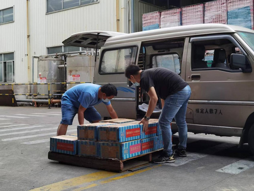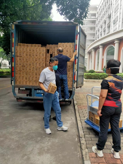 11月15日中午,广东隐雪集团捐赠的1300余箱饮料物资在佛山三水隐雪食品有限公司基地装载完成。两个多小时后,这18000余瓶杨枝甘露、波子水等同学们爱喝的饮料满载着甜蜜的力量抵达广州校区,将配送给校区内一万八千余名师生。广东隐雪集团负责人丘子安表示,非常乐意有这个机会,让同学们喝上三水的饮料,他们尽可能协调满足每人一份,为学校抗疫保障同学们生活尽一点绵薄之力,