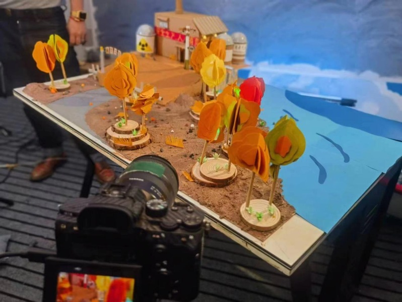 《鹭与鱼》是一部环保主题的定格动画,改变了以往以人为视角的传统宣传思路,尝试以鹭和鱼这种动物视角来讲述环保故事。短片讲述了一只白鹭的“意外”诞生”,一次“偶然”的排污事件以及一群鱼的“自救”,旨在告诫人类环境污染造成的物种之殇,远超我们的想象。创作团队成员介绍,这部不到2分钟的作品一共需要拍摄2880张质量合格的照片,期间还要保证背景、光线不发生变化,每一张照片的背后都涉及场景的调整。但大家都希望用一只“鹭鸟”的角色,一段短小的故事和脑洞大开的动画魔法,给观众展示出不一样的税收环保宣传片。参与创作的同学们也纷纷表示,制作是一个不断推翻再重新来过的过程。虽然耗费了许多时间和精力,但实践能力和专业水平也获得了巨大提升