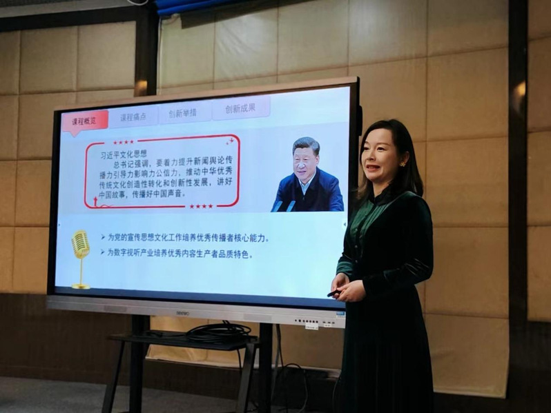 在教学创新大赛校级决赛中,张琦老师的课程设计《主持人即兴口语表达艺术》以“打造精粹口语,传播先进文化”为价值导向,以培养学生即兴口语表达“内六力”为目标,以“产教融合、产创融合”为基本思路,在教学模式和实践路径、课程思政等多方面创新突破。