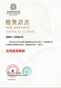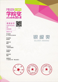 此外,在龚思颖老师的指导下,李熙蕾、林春辰、张晓萱同学在“2023国青杯全国高校艺术设计大赛”中获得二等奖;在“第五届HKCDA香港当代设计奖”中获得铜奖;在“第二届华夏奖·海峡两岸非遗创意设计大赛”中获得优秀奖;在“2023北京非物质文化遗产时尚创意设计大赛”中获得优秀奖。同时,龚思颖老师指导孙畅、董婷婷、彭玲玲、钟颖彤同学在“KTK靳埭强设计奖2023全球华人设计比赛”中获得优秀奖。