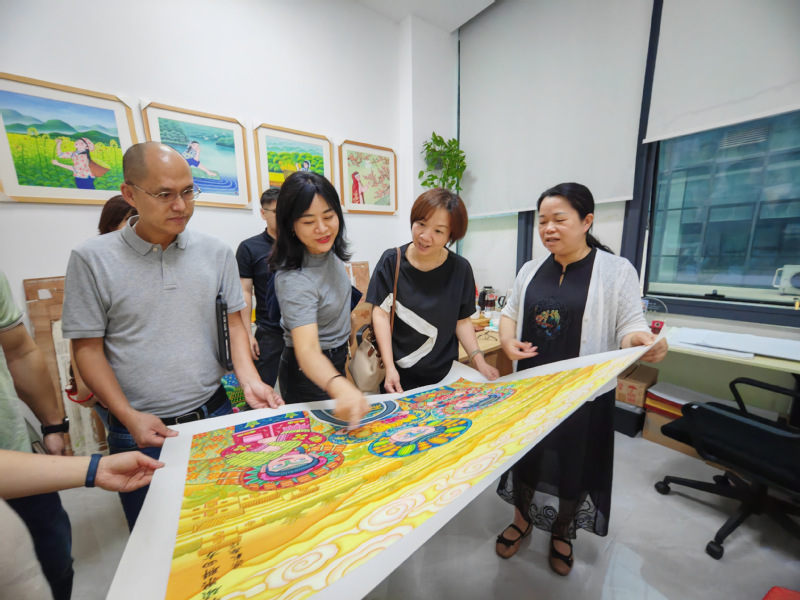 4月19日,学院一行调研了七星公园农民画展览馆、城西上建围百果里、农民工匠协会科普馆,参观了龙门县文化馆农民画工作室,通过实地考察、农民画鉴赏、与当地农民画老艺术家交流等方式,感受当地风土人情、领略农民画的独特魅力和了解农民画背后蕴藏的故事,为龙门动画宣传片制作增添灵感。