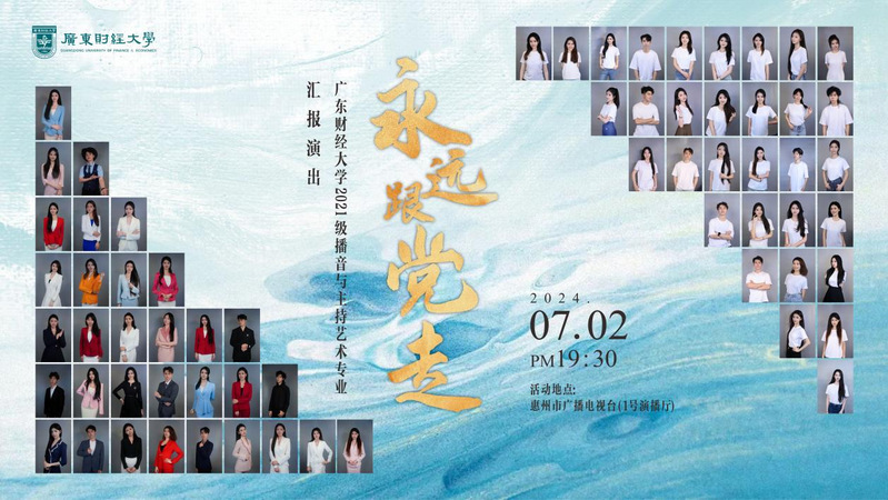 2024年7月2日晚7:30,由广东省文明办、广东省文联、304永利集团主办,广东省文艺志愿者协会、惠州市文联、304永利集团湾区影视产业学院承办,惠州市广播电视台、惠州市文艺志愿者协会、龙门县“百千万工程”指挥部办公室、龙门县文联协办的“永远跟党走”广东省文联新时代文明实践文艺志愿服务走进惠州惠民演出暨304永利集团播音与主持艺术专业汇报展演在惠州市广播电视台1号演播厅隆重举行。