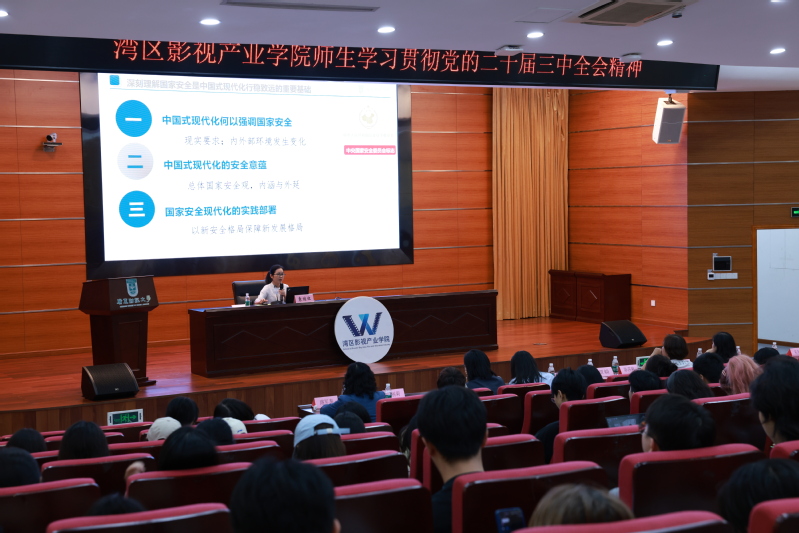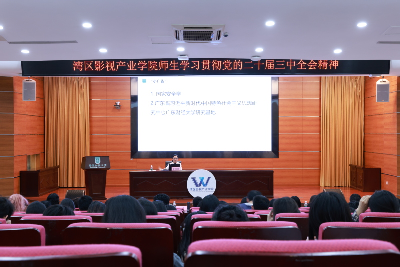 为深入学习贯彻落实党的二十届三中全会精神,10月24日晚上,湾区影视产业学院分党校在广州校区勤学楼408开展《深刻理解国家安全是中国式现代化行稳致远的重要基础——学习贯彻党的二十届三中全会精神》专题讲座,邀请马克思主义学院院长、国家安全与发展研究院执行院长袁继红教授主讲,湾区影视产业学院党政班子、党委委员、党支部书记、系主任、党委组织员、2021级本科全体学生、2022级全体研究生参加,讲座由学院党委书记陈莎莉主持。