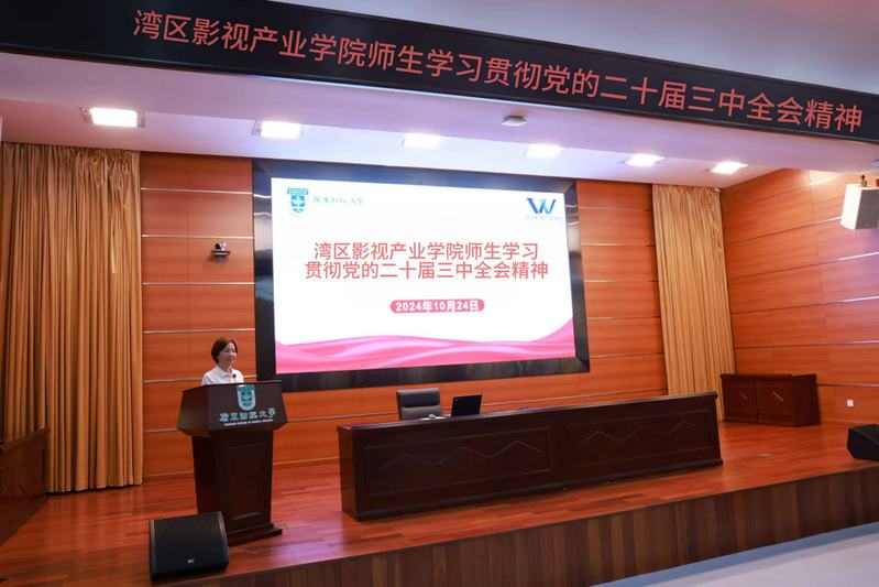 为深入学习贯彻落实党的二十届三中全会精神,10月24日晚上,湾区影视产业学院在广州校区勤学楼408开展《深刻理解国家安全是中国式现代化行稳致远的重要基础——学习贯彻党的二十届三中全会精神》专题讲座,邀请马克思主义学院院长、国家安全与发展研究院执行院长袁继红教授主讲,湾区影视产业学院党政班子、党委委员、党支部书记、系主任、党委组织员、2021级本科全体学生、2022级全体研究生参加,讲座由学院党委书记陈莎莉主持。