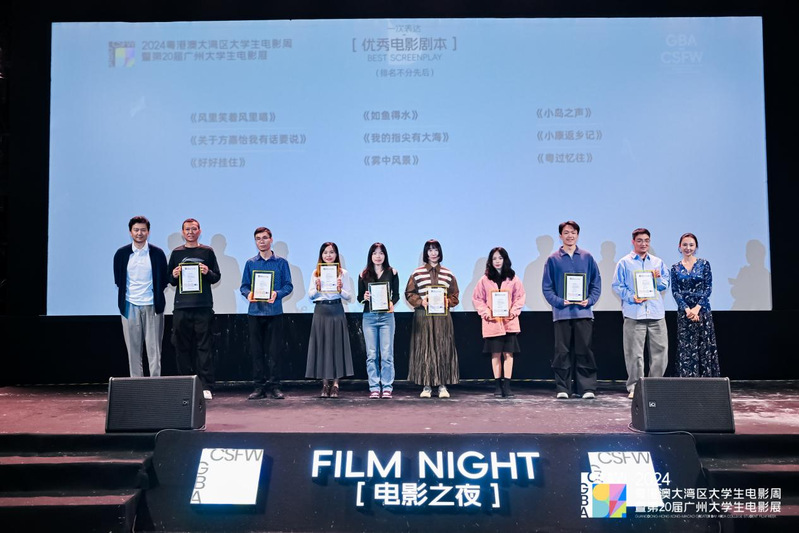 本届粤港澳大湾区大学生电影周暨第20届广州大学生电影展活动由广东省电影局、广东省教育厅、共青团广东省委员会等单位指导,广东省电影家协会、广州市电影家协会等单位主办,面向全国高校在校学生广泛征集作品,共收到剧本74部、影评256部、剧情类短片442部、纪录类短片244部、动画类短片116部,各类作品总计1132部。其数量之多、类型之多元、题材之丰富,充分展现了当代大学生的创作激情和艺术创意。中国电影家协会副主席尹鸿、阿里影业副总裁关旭、FIRST青年影展创始人宋文等国内一线影视行业领军人物参与活动并为获奖作品颁奖。
