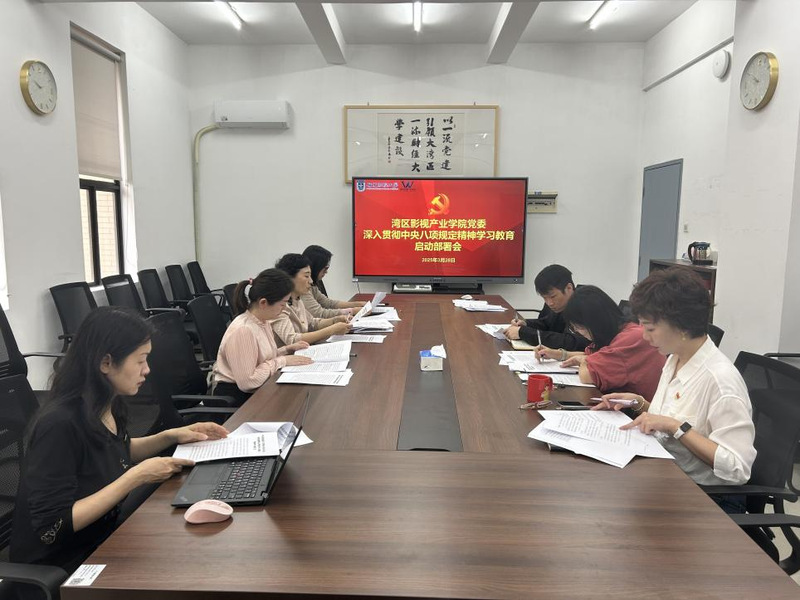 3月28日,湾区影视产业学院党委在佛山校区厚德楼427召开深入贯彻中央八项规定精神学习教育启动部署会。学院党委委员、党支部书记和组织员参加会议。会议由湾区影视产业学院党委副书记路军奉主持。