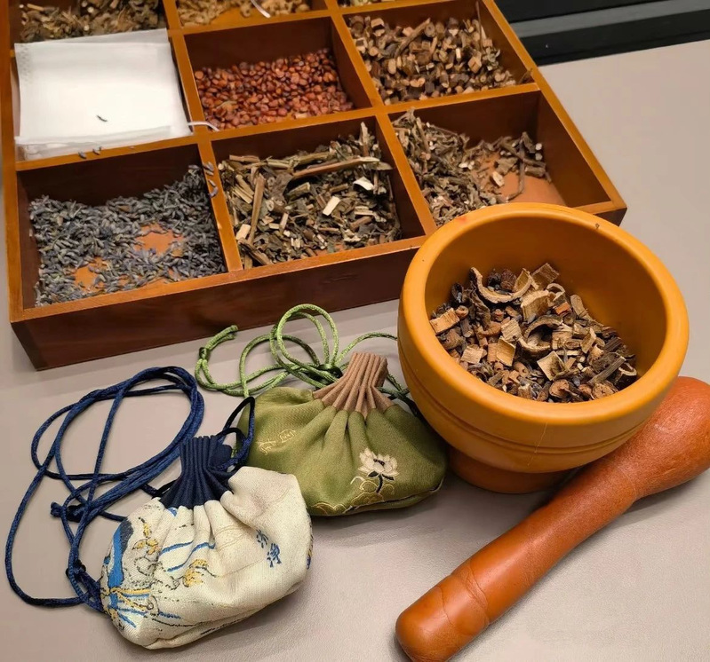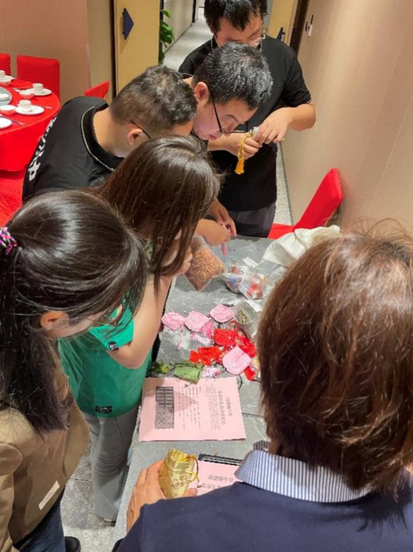 临近中午,工会别出心裁地为师生们准备了端午香囊 DIY 活动。活动现场,专业人员详细介绍了中国传统中医中的 “衣冠疗法”,讲解香囊驱邪避疫、祈福健康的文化寓意。师生们兴致勃勃地挑选艾草、丁香、藿香等中药材,根据自身需求精心搭配,制作出一个个独具特色的香囊。一针一线,凝聚着对传统文化的传承;一草一木,寄托着对美好生活的向往。