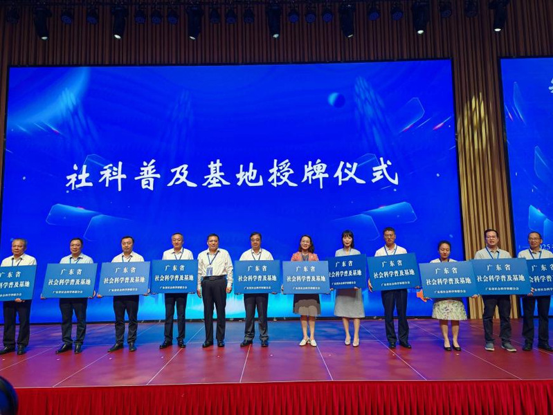 活动仪式中,省社科联发布了去年以来获得立项的科普基地。我校湾区影视产业学院主导申报的“岭南文化与影视传播科普基地”,经过前期现场考察与评估,荣获这一殊荣。李宜航书记为基地授牌,郑贤操书记代表学校接过牌匾。