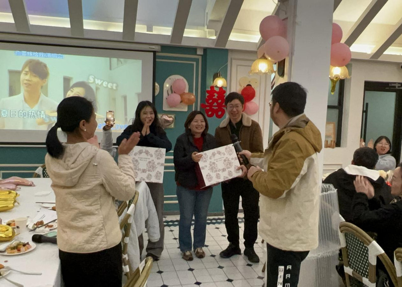 傍晚,温馨的新婚祝福仪式拉开序幕,两对新婚教师受邀上台,学院工会为他们送上红色小台灯,寓意“缘定湾影,光影相守”。在全场热烈的掌声中,新人分享了新婚感悟,真挚的话语里满含对学院关怀的感恩,也传递出携手前行的期许。